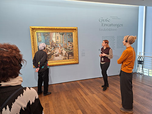 Am Samstag, den 24. Januar 2026, trafen sich zahlreiche Mitglieder unseres Freundeskreises, um die Ausstellung „Impressionismus in Deutschland. Max Liebermann und seine Zeit“ zu besuchen. Frau Veronika Müller M.A. führte unsere Gruppe durch die Räume des Museums Frieder Burda in Baden-Baden und vermittelte einen lebendigen Blick auf den deutschen Impressionismus. Die Ausstellung zeigt – neben den Werken Liebermanns –Arbeiten seiner Malerkolleg:innen: Lovis Corinth, Dora Hitz, Gotthardt Kuehl, Sabine Lepsius, Maria Slavona, Max Slevogt, Eva Stort und Fritz von Uhde. In Kooperation mit dem Museum Barberini in Potsdam entstanden, versammelt die Ausstellung 108 Gemälde und gewährt damit breitgefächerte Einblicke in die Geschichte des deutschen Impressionismus. Besonders reizvoll ist dabei sicher die in ‚Petersburger Hängung` zu sehende Sammlung von Nachtbildern Lesser Urys, der sich der gaslichtbeleuchteten Berliner Stadtlandschaft immer dann widmete, wenn der Regen einsetzte.